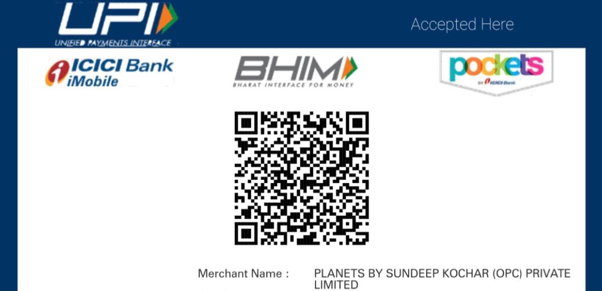 Bank Details: Planets by Sundeep Kochar (OPC) Pvt Ltd